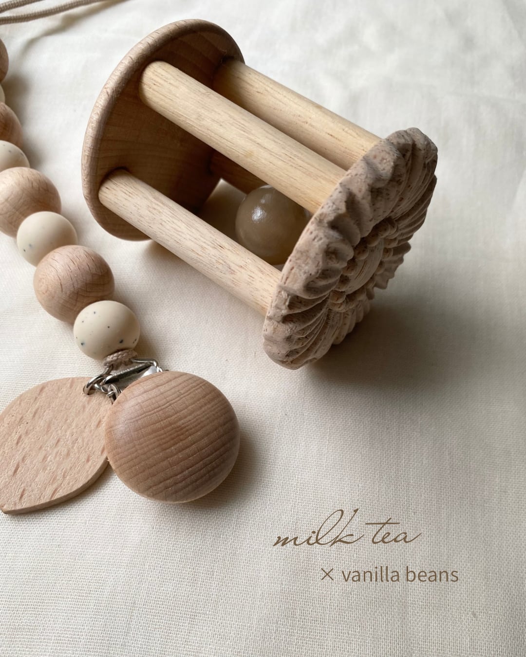 ウッドビーズのぬくもりと木目のやさしい表情
