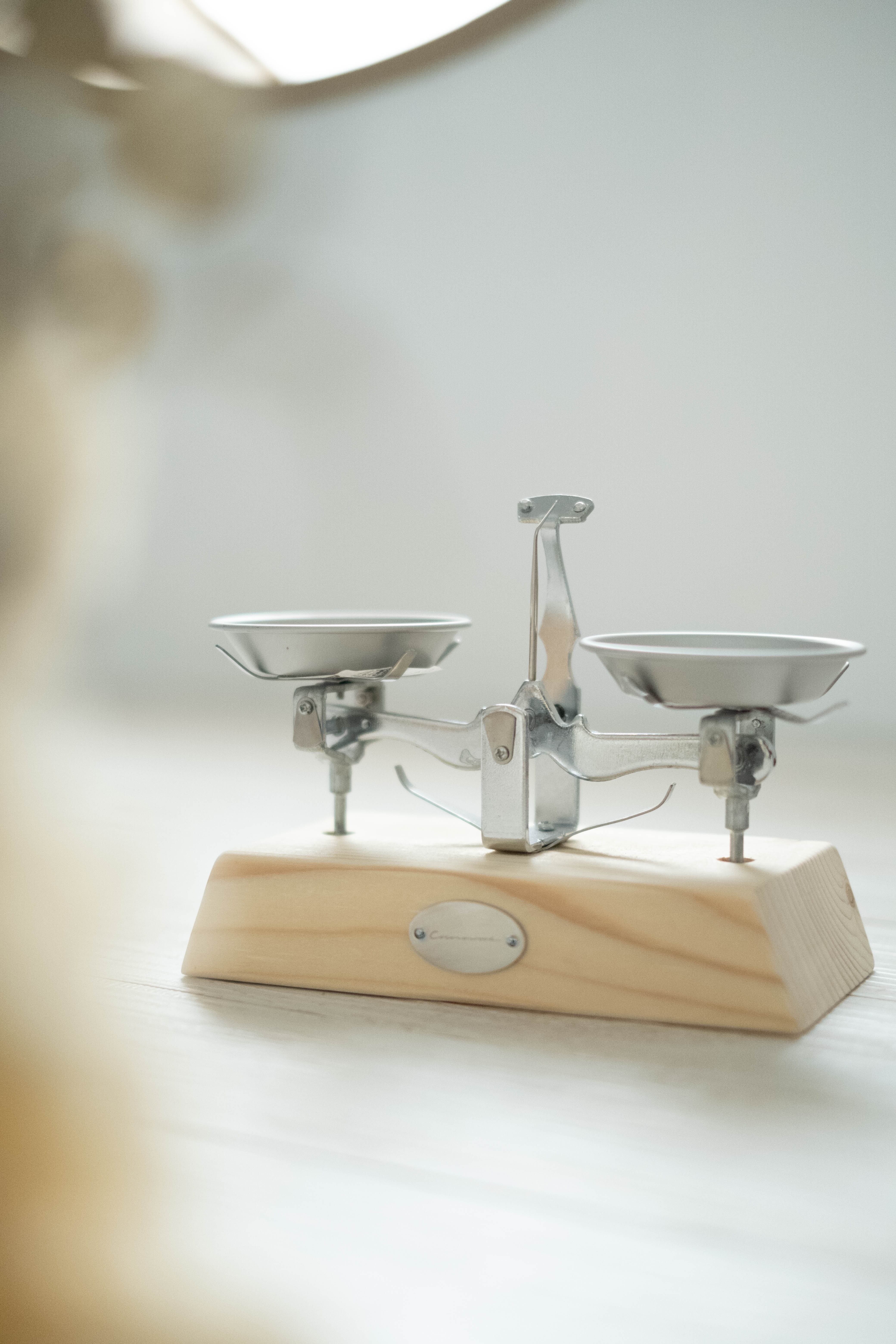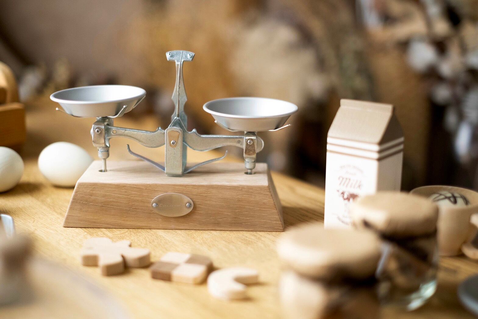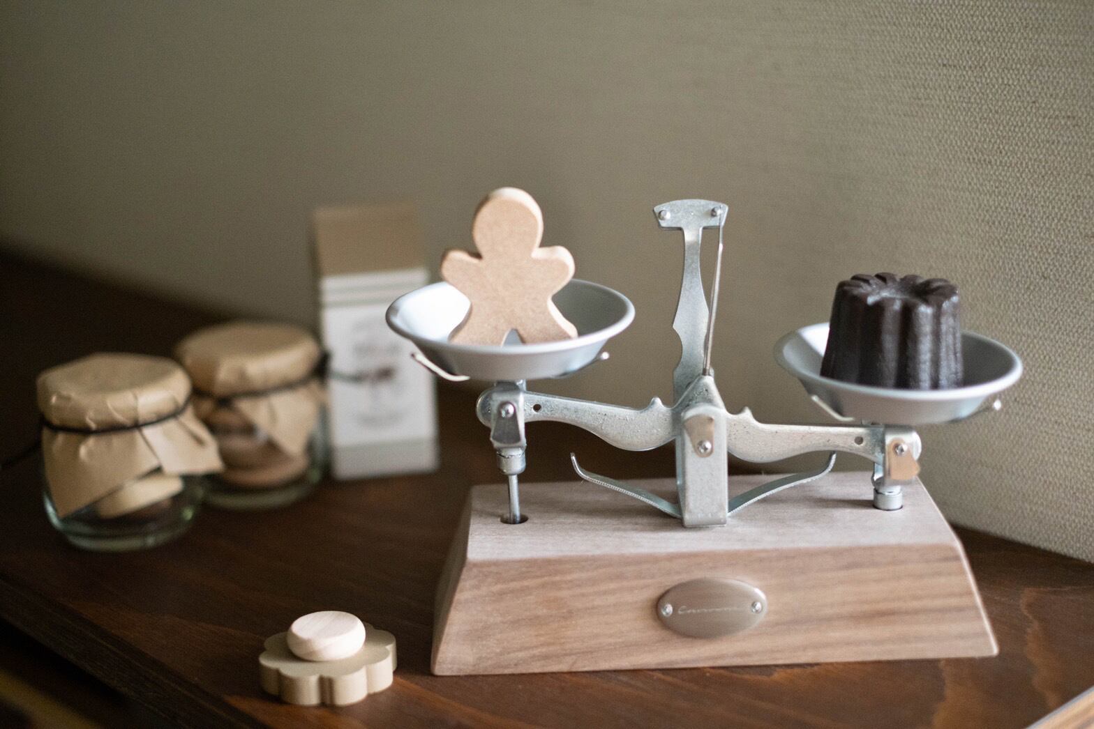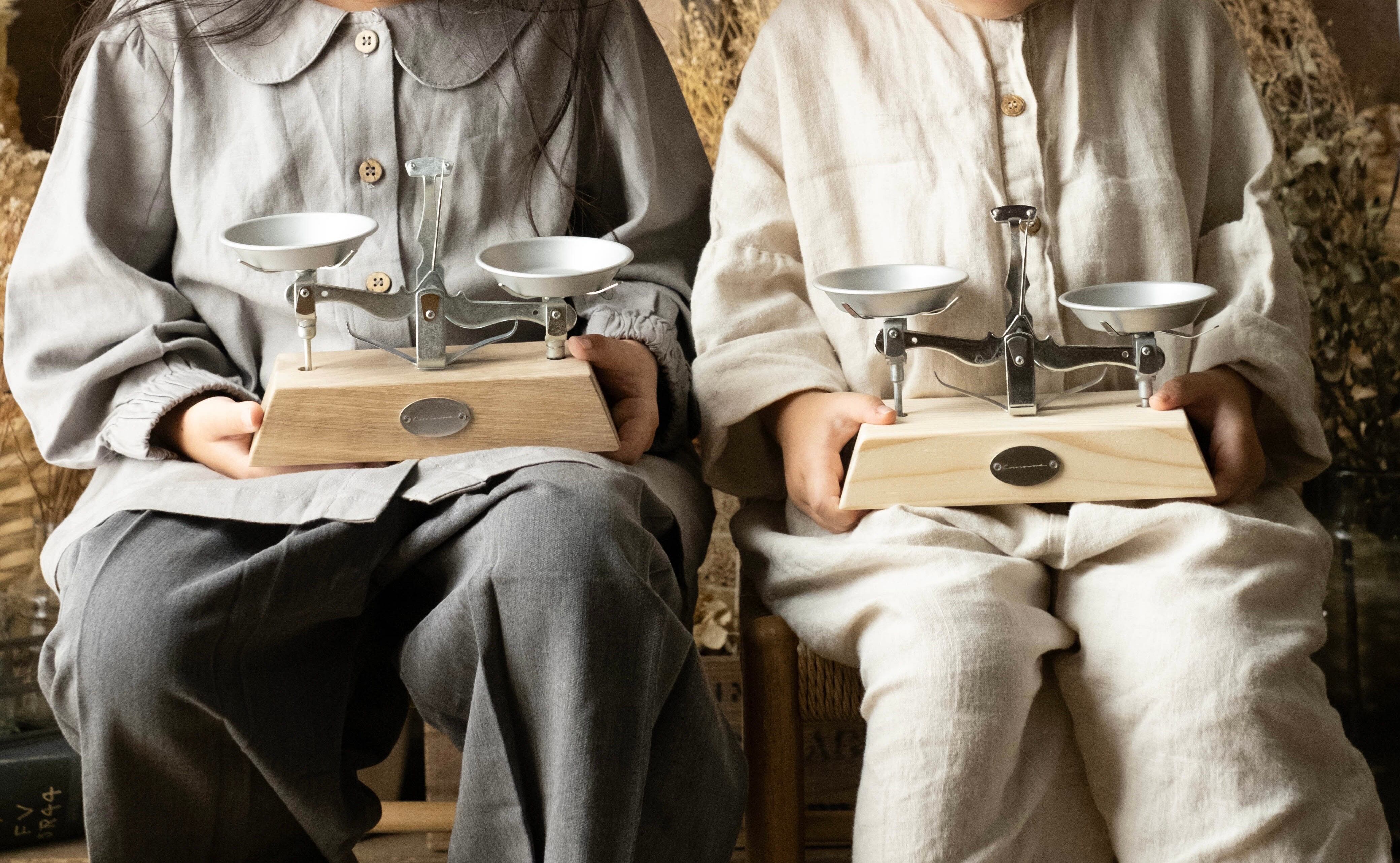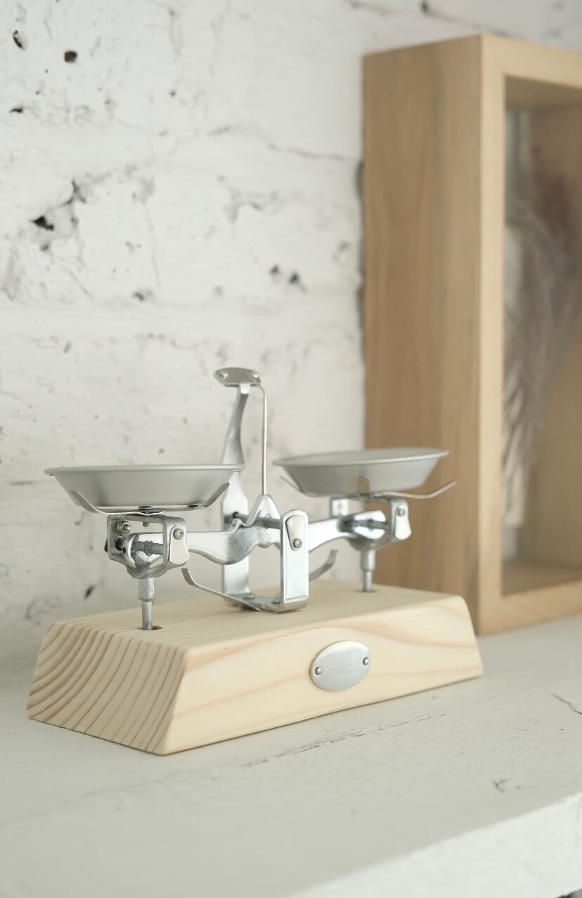 英語で 穏やかなバランス という意味の木製の天秤です。